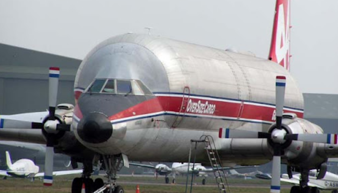 The first Super Guppy, or "SG", was built directly from a retired USAF Boeing YC-97J Stratofreighter. The fuselage was lengthened to 141 feet (43 m), and ballooned out to a maximum inside diameter of 25 ft (7.6 m), the length of the cargo compartment being 94 ft 6 in (28.8 m). The floor of the cargo compartment was still only 8 ft 9 in (2.7 m) wide, as necessitated by the use of the Stratocruiser fuselage.