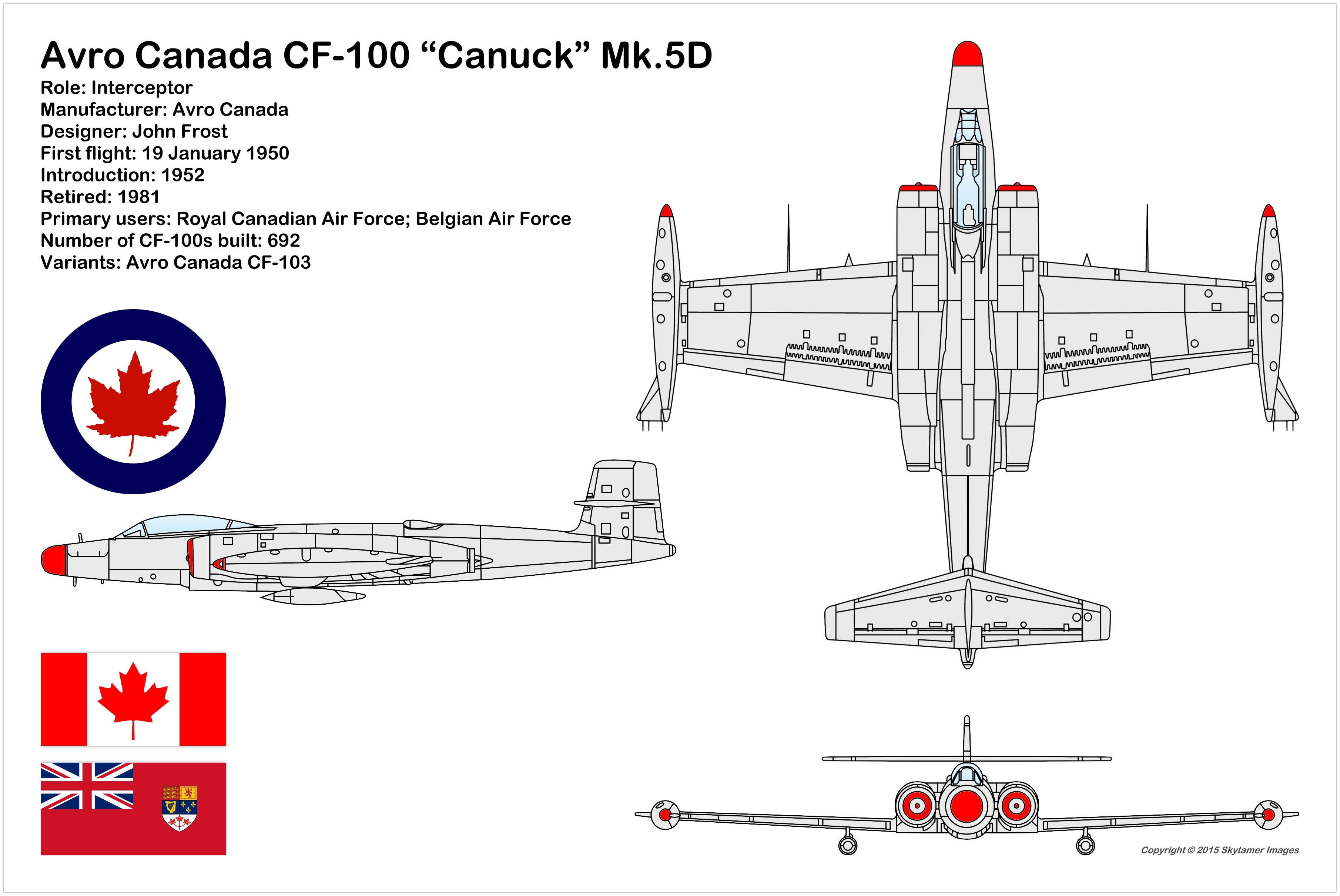The Avro Canada CF-100 Canuck (affectionately known as the "Clunk") is a Canadian twinjet interceptor/fighter designed and produced by aircraft manufacturer Avro Canada. It has the distinction of being the only Canadian-designed fighter to enter mass production..