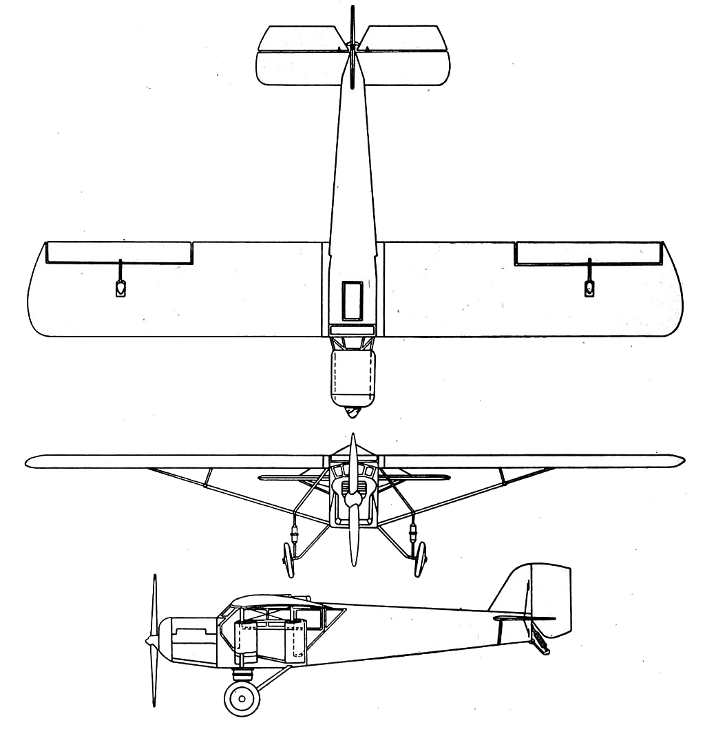 The Robin, a workmanlike cabin monoplane, had a wooden wing and steel tubing fuselage. The cabin accommodated three persons; two passengers were seated side-by-side behind the pilot. Early Robins were distinguished by large flat fairings over the parallel diagonal wing bracing struts; the fairings were abandoned on later versions, having been found to be ineffective in creating lift. The original landing gear had bungee rubber cord shock absorbers, later replaced by an oleo-pneumatic system; a number of Robins had twin floats added. Variants of the Robin were fitted with engines which developed 90–185 hp (67–138 kW).