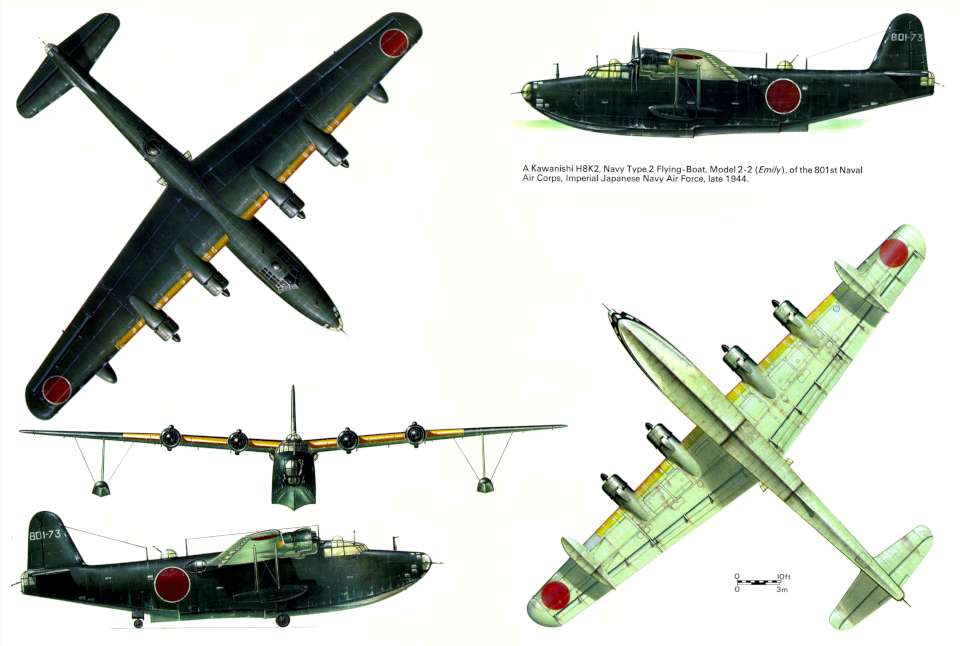 H8K2s were used on a wide range of patrol, reconnaissance, bombing, and transport missions throughout the Pacific War. The H8K2 was given the Allied code name "Emily".