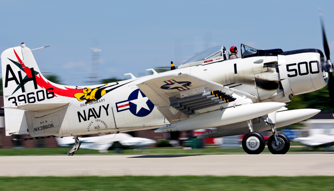 The piston-engined, propeller-driven Skyraider was designed during World War II
