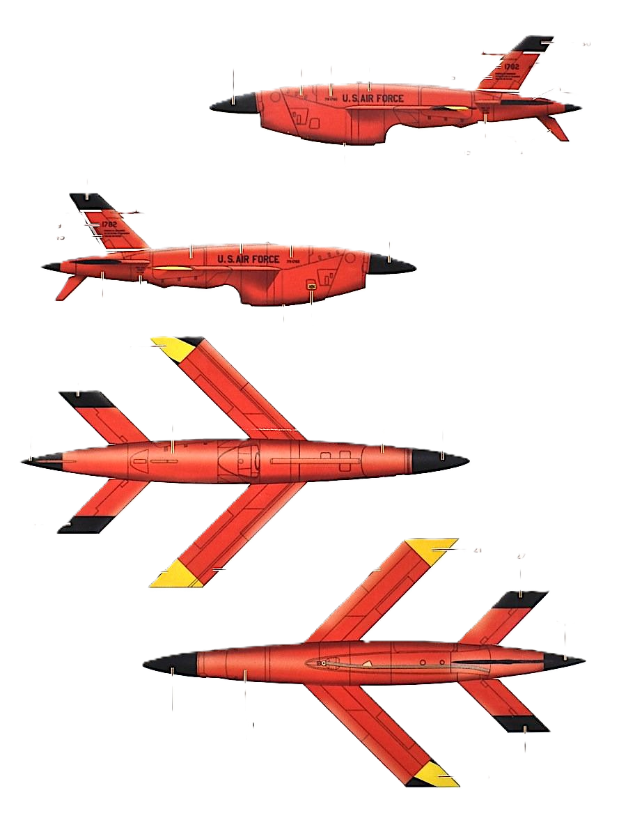 The Firebee I was the result of a 1948 U.S. Air Force request and contract to Ryan for a jet-powered gunnery target. The first flight of the XQ-2 Firebee prototype took place in early 1951. The drone featured swept flight surfaces and a circular nose inlet. The initial models had distinctive "arrowhead" shaped endplates on the tailplane. The Firebee could be air-launched from a specially modified launch aircraft (Douglas A-26 Invader was first to be used for this purpose), or ground-launched with a single RATO booster