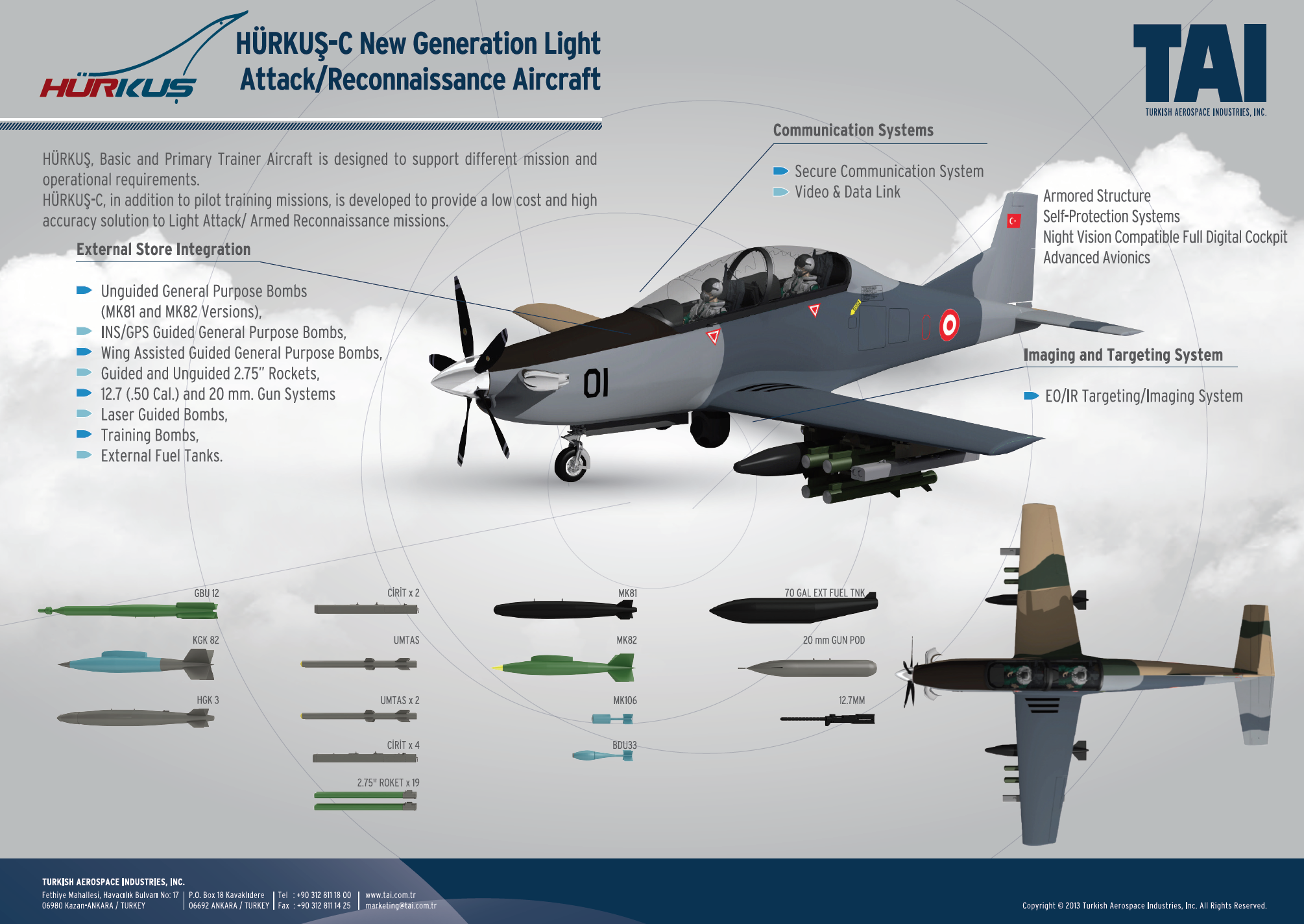 In February 2017, photos were released by the Turkish MoD showing the prototype for armed version, the Hürkuş-C